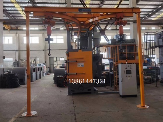 4、 双吊钩结构,彼此独立工作,互不影响,提高生产效率,吊具采用行星原理,自转公转同时进行,处理后的工件不存在阴阳面。