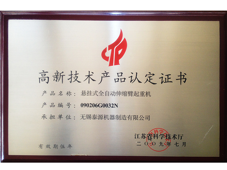 高新技术产品认定证书