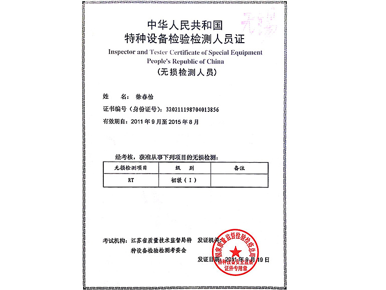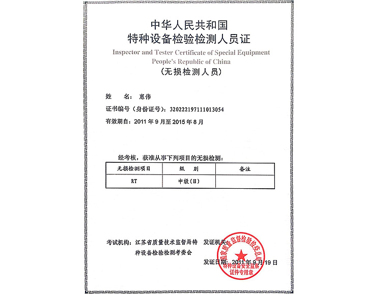 无损检测证书