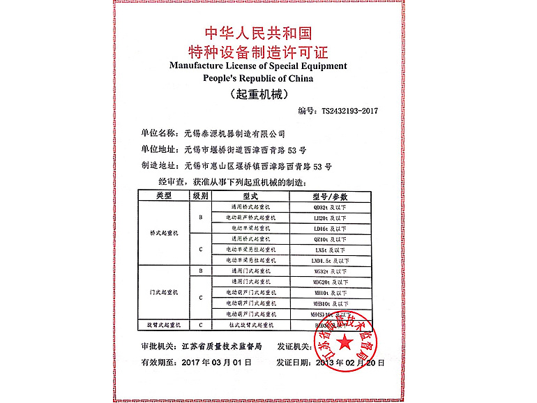 特种设备制造许可证