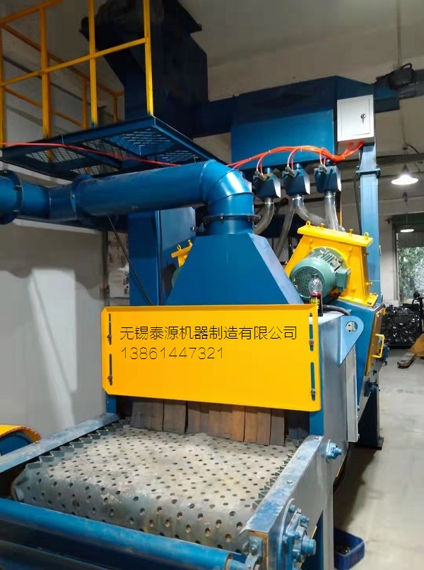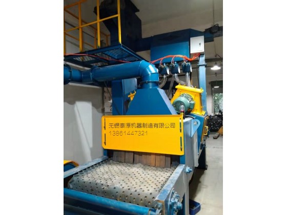 履带通过式抛丸清理机(无锡抛丸机):在处理线工艺是指的钢材在加工前(既原材料的状态)去进行表面抛丸除锈并涂上一层保护底漆的加工工艺。但凡钢材是经过预先处理的,都能有效的可以提高机械产品和金属构件的抗腐蚀性,提高钢板的抗疲劳性能,延长其使用寿命:同时还可以优化钢材表面工艺制作状态,非常有利于数控和切割机下料以及精密落料,大大的改善工作的疲劳强度和对环境的污染。此外,由于钢材在加工前其形状比较规则,有利于机械除锈和自动化喷漆,因此采用钢材预处理可大大提高清理工作的 效率,减轻清理工作的劳动强度和对环境的污染。正因为如此,钢板预处理工艺不仅在工艺发达国家已推广应用,而且在国内引起众多行业的日益重视,不少企业已把钢材预处工艺提到企业技术改造的议事当中。