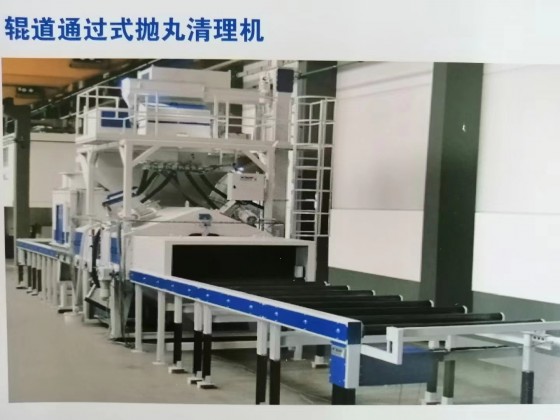板材通过式抛丸清理机:在处理线工艺是指的钢材在加工前(既原材料的状态)去进行表面抛丸除锈并涂上一层保护底漆的加工工艺。但凡钢材是经过预先处理的,都能有效的可以提高机械产品和金属构件的抗腐蚀性,提高钢板的抗疲劳性能,延长其使用寿命:同时还可以优化钢材表面工艺制作状态,非常有利于数控和切割机下料以及精密落料,大大的改善工作的疲劳强度和对环境的污染。此外,由于钢材在加工前其形状比较规则,有利于机械除锈和自动化喷漆,因此采用钢材预处理可大大提高清理工作的 效率,减轻清理工作的劳动强度和对环境的污染。正因为如此,钢板预处理工艺不仅在工艺发达国家已推广应用,而且在国内引起众多行业的日益重视,不少企业已把钢材预处工艺提到企业技术改造的议事当中。