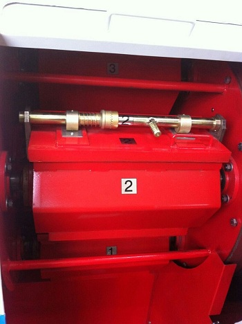 3.3拨下固紧杆,便可取下滚筒。盖筒盖时,可按以上做逆动作。 注:手柄杆之位置必须如图3所示,压至最低点,以免同拉杆相碰。4、工件的装入: